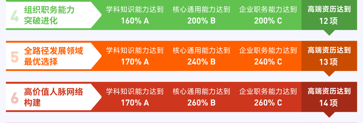 关于大学生提升高端能力的原理与模式,我们深度研究了超过30万名以普通或劣势背景,实现优异职业发展和超过10000名包括华为天才少年等实现卓越发展的大学生群体之后,发现他们无一例外都是在大学期间投入了足量时间参加了特定高价值活动,锤炼出了均衡优异的高端能力与资历结构
